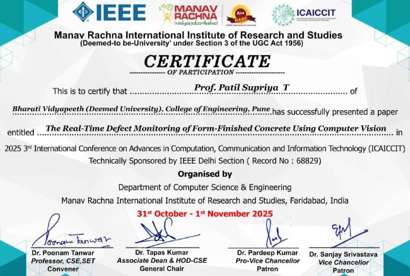 | 1 | Ms. PAYAL DEEPAK MAHAJAN | Certified Trainer with Grade ‘B’ for the Qualification Pack of VLSI Design Engineer (ELE/Q1201) – v3.0 conforming to National Skill Qualification Framework Level – 5 |