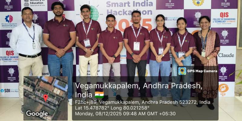 The Smart India Hackathon (SIH) 2025 – Software Edition Grand Finale was successfully conducted at QIS College of Engineering and Technology (QISCET), Ongole, Andhra Pradesh, featuring an intense 36-hour continuous competition. The event witnessed the participation of 20 teams working on multiple problem statements.